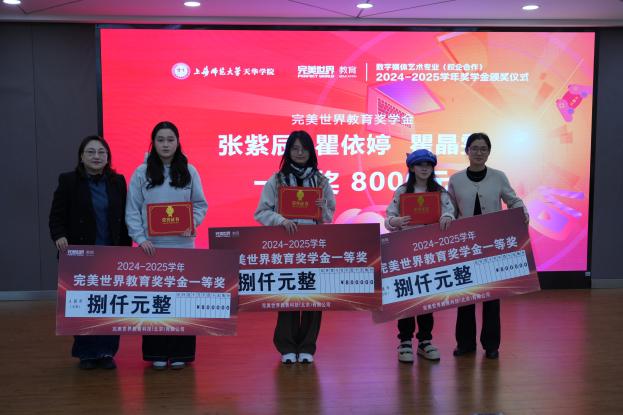 12月17日下午14:40,由我院与完美世界教育科技 (北京) 有限公司(以下简称“完美世界教育”)共同举办的“数字媒体艺术(校企合作)专业完美世界教育2024-2025学年奖学金颁奖仪式”在我校晖华楼报告厅顺利举行。莅临本次颁奖典礼的领导嘉宾有:艺术设计学院常务副院长朱花、艺术设计学院党总支书记王慧荣、艺术设计学院数字媒体艺术(校企合作)专业主任黄潇馨、艺术设计学院数字媒体艺术(校企合作)专业秘书刘奕昕、完美世界教育副总裁陈阳、完美世界教育京沪区院校合作负责人左成季龙、完美世界教育资深专业教师陈磊、周海峰和冯一露。