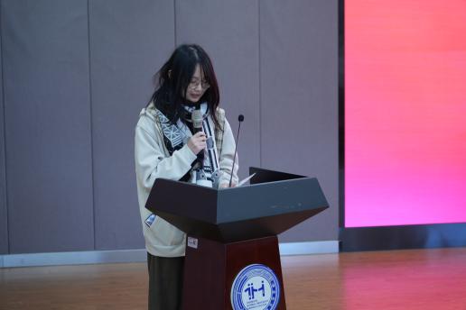 获奖学生代表张紫辰上台发言,她结合自身在专业的学习与实践经历分享感言。她表示,这份奖项是对过去一年的肯定,更促使自己将兴趣转化为实践,深入参与赛事策划与执行的全过程。她回顾了与团队共同克服设备更新、技术摸索等挑战的经历,在老师的指导下,从生疏到专业,切实体会到将想法落地的艰辛与成就感。最后,她感谢学院、企业与师友的支持,并希望未来能继续将热爱转化为扎实的专业表达。
