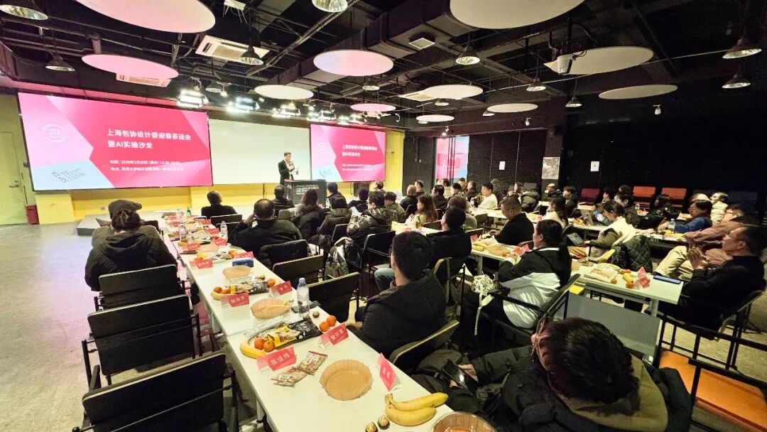 近日,上海包装设计委员会“迎春茶话会暨AI实战沙龙”在同济大学设计创意学院成功举办。我校艺术设计学院教师龚观作为会员代表受邀出席,与来自上海、浙江等地近六十位行业精英、学者及企业代表共聚一堂,围绕AI时代的设计变革展开深度交流。