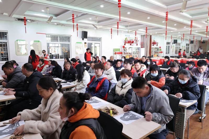 随后,志愿者逐步讲解落叶贴画雷锋像的制作方法,从落叶的挑选、修剪,到胶水的粘贴技巧,志愿者们全程一对一陪伴,让每一位参与者都能轻松参与其中。
