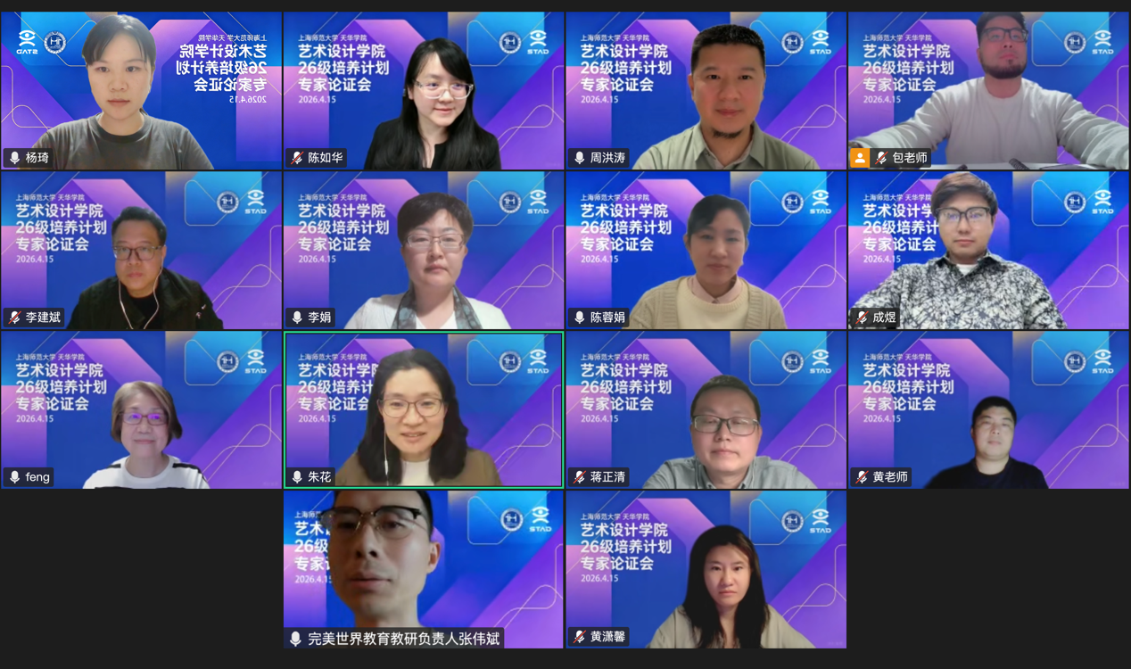 4月15日,艺术设计学院2026级环境设计与数字媒体艺术专业培养方案专家论证会在线上举行,会议邀请到了上海大学上海美术学院特聘教授冯节教授、澳门大学设计学科带头人周洪涛教授、华东理工大学艺术设计与传媒学院传媒系主任蒋正清、上海现代建筑装饰环境设计研究院有限公司室内五所艺术总监陈蓉娟、完美世界集团教育教研负责人张伟斌5位专家参与论证。会议由副院长包臻隽主持,常务副院长朱花、副院长李娟、院长助理陈如华,以及环境设计和数字媒体艺术专业的专业主任等出席本次会议。会议对环境设计与数字媒体艺术专业2026级培养方案开展全面评审,重点围绕学分压减、AI融合以及方向重构等议题进行讨论,专家结合经验提出针对性优化建议。